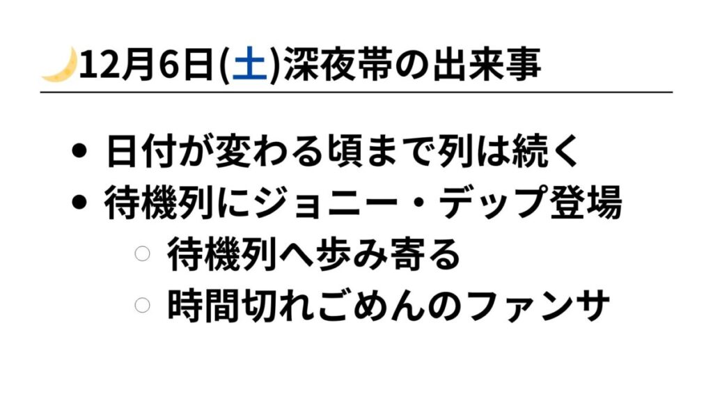 - 深夜帯のファンサと、急遽サイン対応という異例の展開が起きた